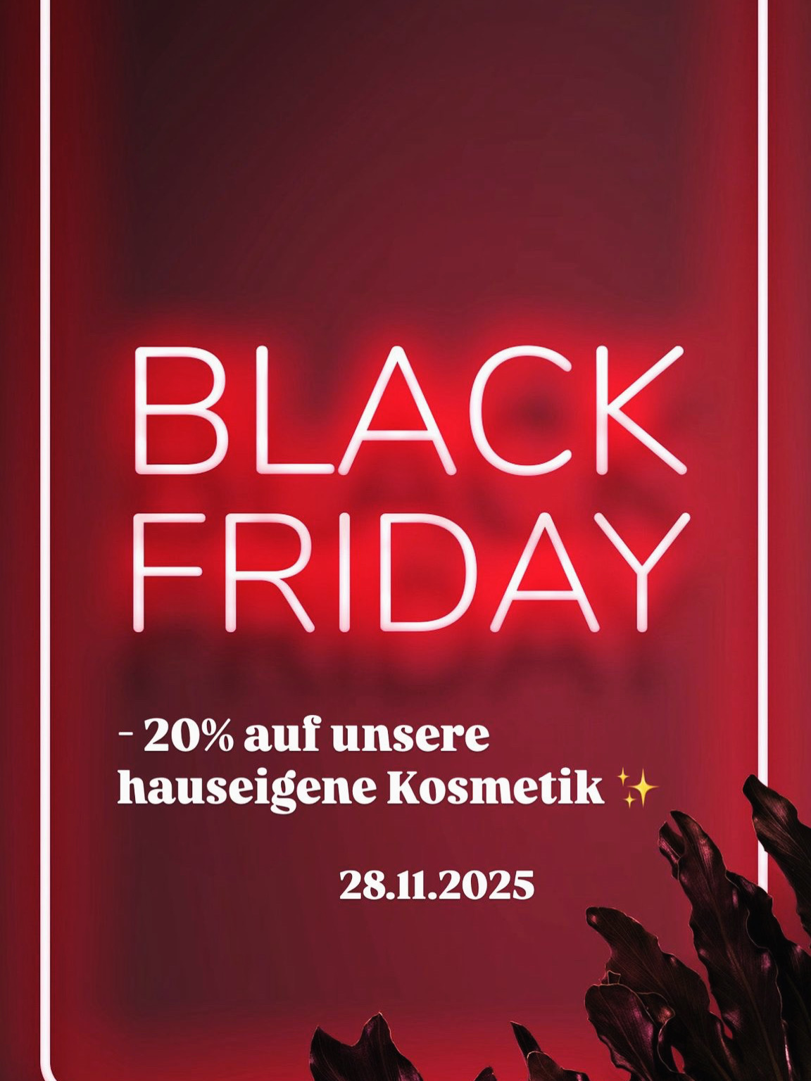 • Am Black Friday (28.11.2025) sparen Sie 20% auf unsere hauseigene Kosmetik!